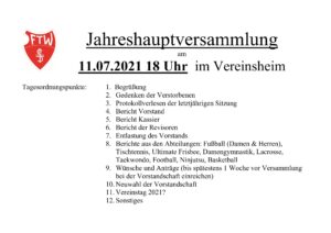 Jahreshauptversammlung am 11.07.2021 um 18 Uhr